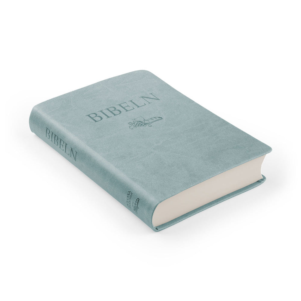 Kompaktbibeln i turkos skinnimitation är en bra kombination av Kompaktbibelns behändighet med lite värdefullare utförande. Den har ett förmånligt pris med samma mått och samma rika innehåll som övriga kompaktbiblar.